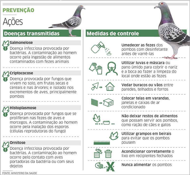 – umedecer as fezes dos pombos com desinfetante antes de varrê-las;